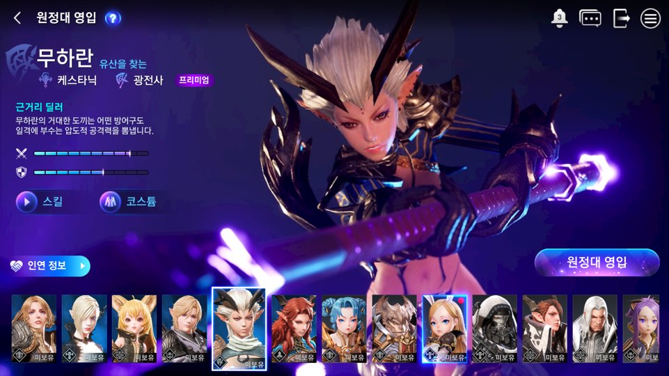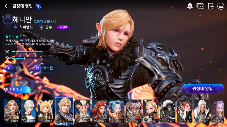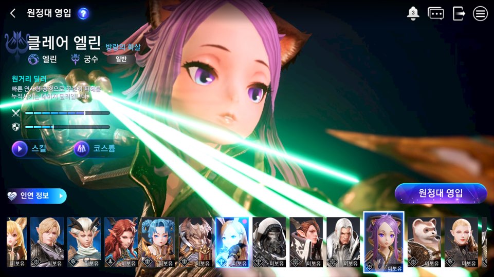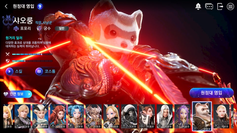 특징: 긴 사거리로 안전한 위치에서 강력한 일격으로 저격형 원거리를 노리는 데미지 딜러입니다.