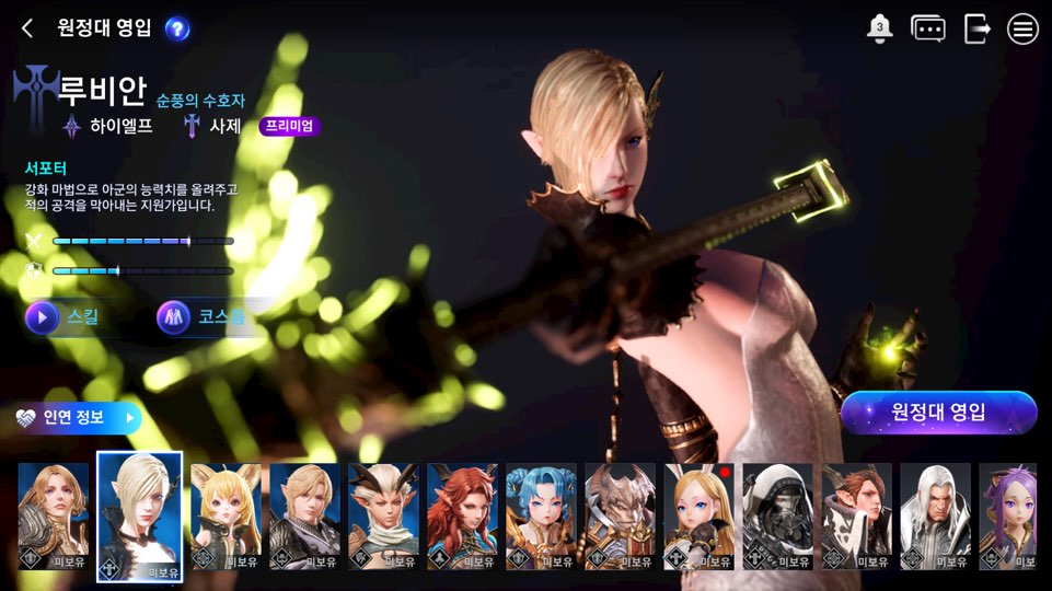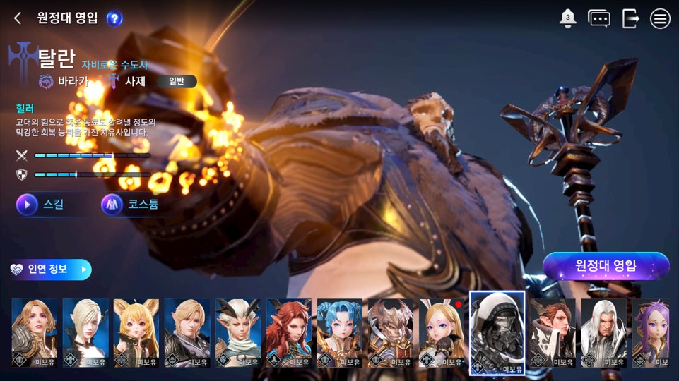 특징: 강화 마법으로 아군의 능력치를 올려주고 적의 공격을 막아낼 수 있는 든든한 지원가입니다.