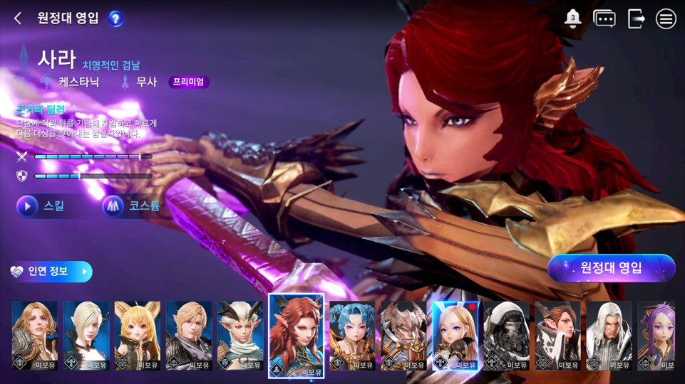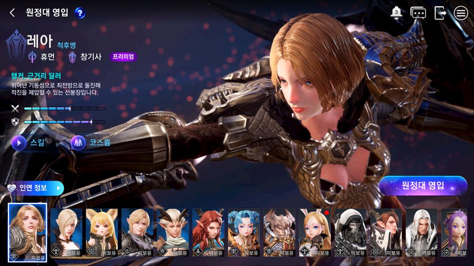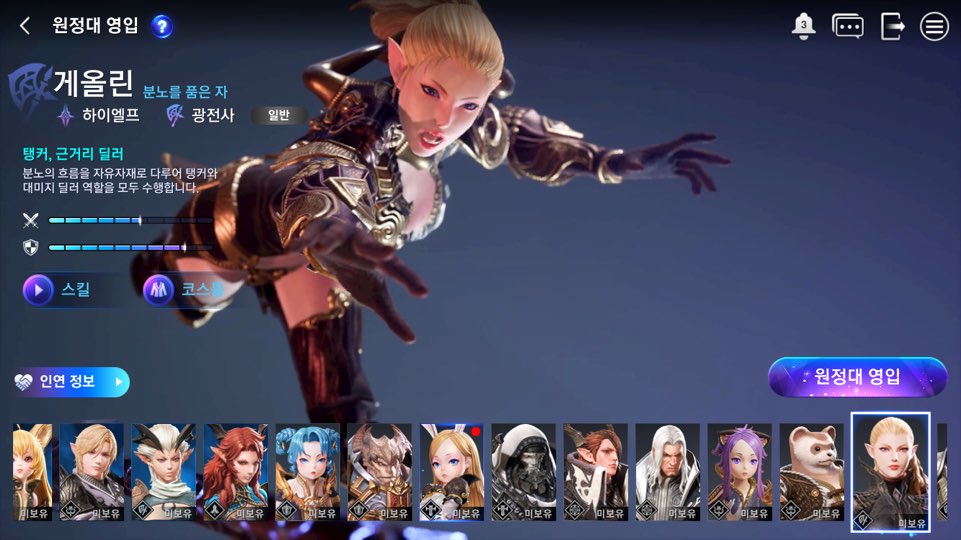 특징: 파티원의 피해를 나눠받고 스스로 생명력 회복이 가능한 창기사입니다.
