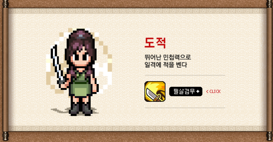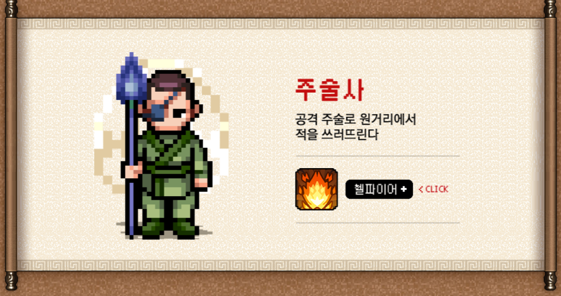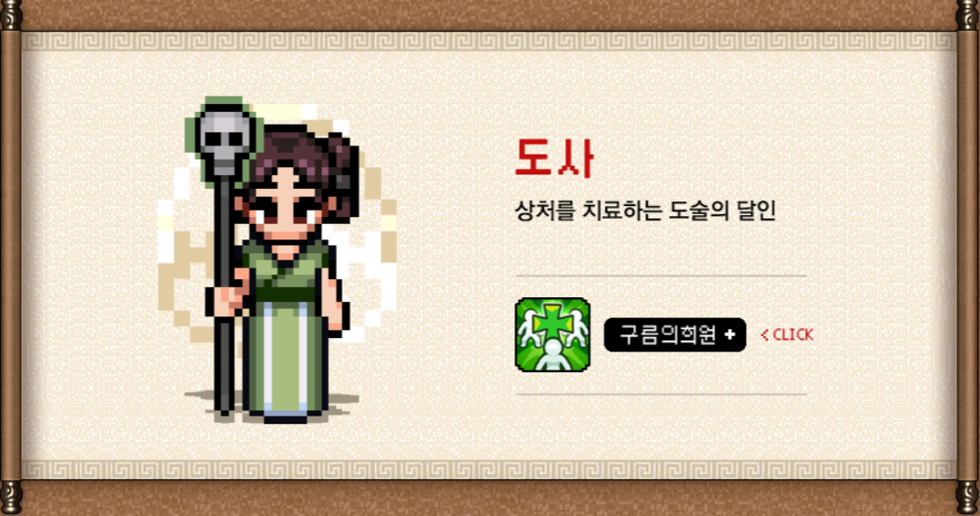 | 1. 전사 - 강인한 체력을 바탕으로 전투 시 최전방에 나섭니다. 2. 도사 - 상처를 치료하는 도술의 달인입니다. 도사는 사냥을 하면서 스스로 힐이 가능하기 때문에 사람들이 제일 많이 하지 않을까 싶습니다. 3. 도적 - 뛰어난 민첩력으로 일격에 적을 벱니다 4. 주술사: 공격 주술로 원거리에서 적을 쓰러뜨립니다. 모바일 무과금으로 진행을 하실거면 주술사를 추천합니다. 원거리 캐릭터이기 때문에 물약값이 생각보다 많이 들지도 않습니다. |
