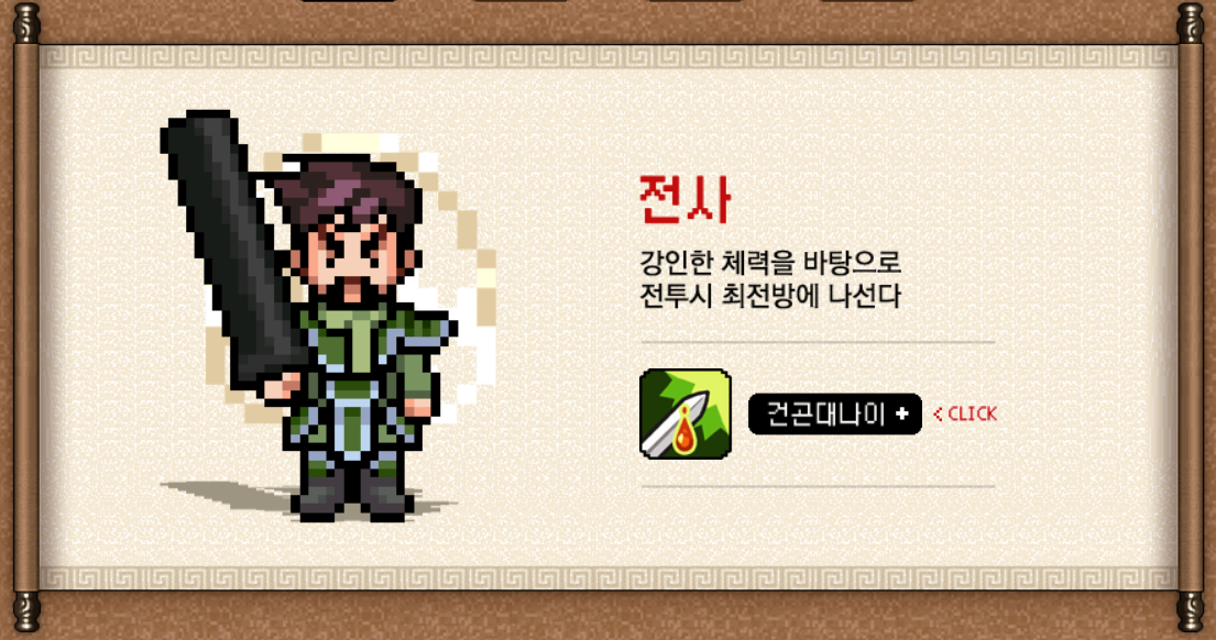 | 1. 전사 - 강인한 체력을 바탕으로 전투 시 최전방에 나섭니다. 2. 도사 - 상처를 치료하는 도술의 달인입니다. 도사는 사냥을 하면서 스스로 힐이 가능하기 때문에 사람들이 제일 많이 하지 않을까 싶습니다. 3. 도적 - 뛰어난 민첩력으로 일격에 적을 벱니다 4. 주술사: 공격 주술로 원거리에서 적을 쓰러뜨립니다. 모바일 무과금으로 진행을 하실거면 주술사를 추천합니다. 원거리 캐릭터이기 때문에 물약값이 생각보다 많이 들지도 않습니다. |