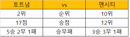 프리미어리그 2위를 달리고 있고 맨시티는 예상외로 10위 중위권입니다.